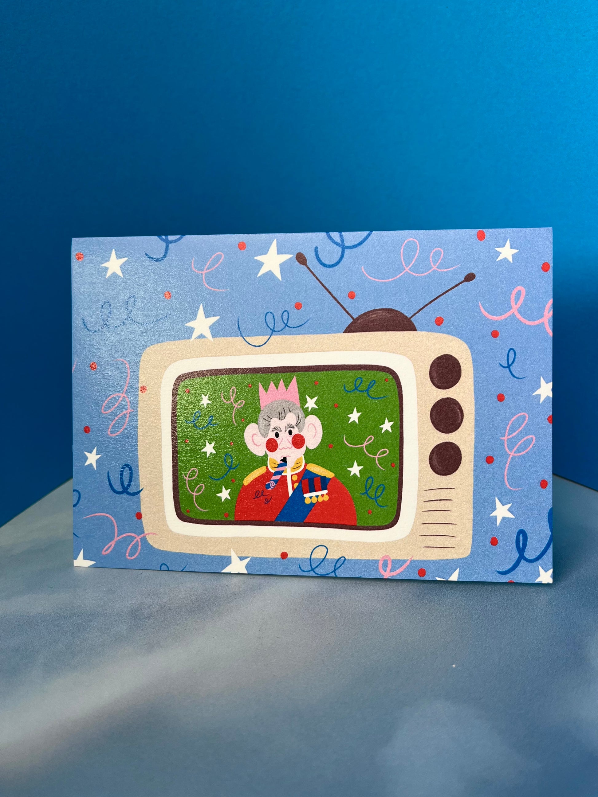 Vibrant hand drawn King Charles card doing his Christmas speech. Not that anyone really watches it apart from your Nan :)
